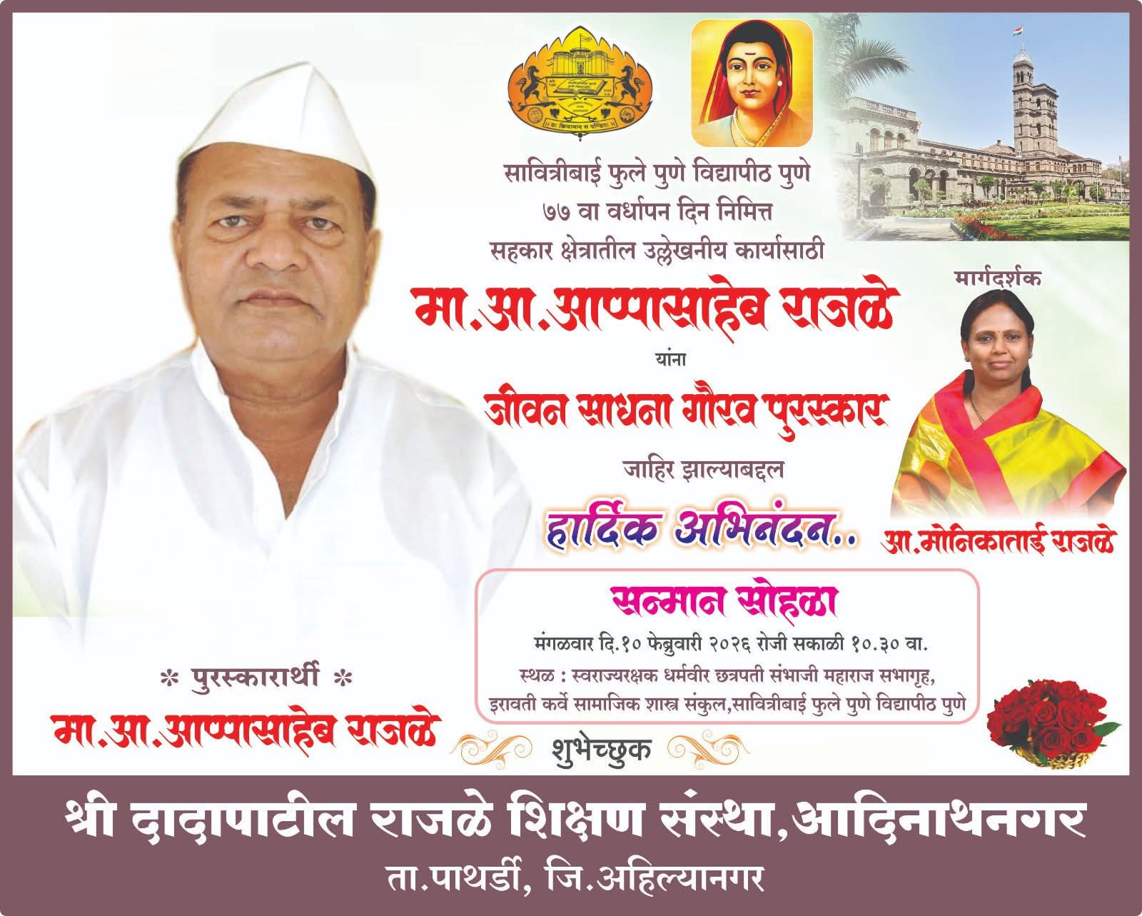 Shri Dadapatil Rajale Shikshan Sanstha’s ‘Dadapatil Rajale Arts and Science College’ was founded in 1991 by Hon’ble Late Shri. Dadapatil Rajale who was also the founder of Vriddheshwar Sugar Factory which is situated at Adinathnagar. He had given valuable contribution in the field of education and co-operative sector. He was involved in social and educational activities since 1942. Read More…